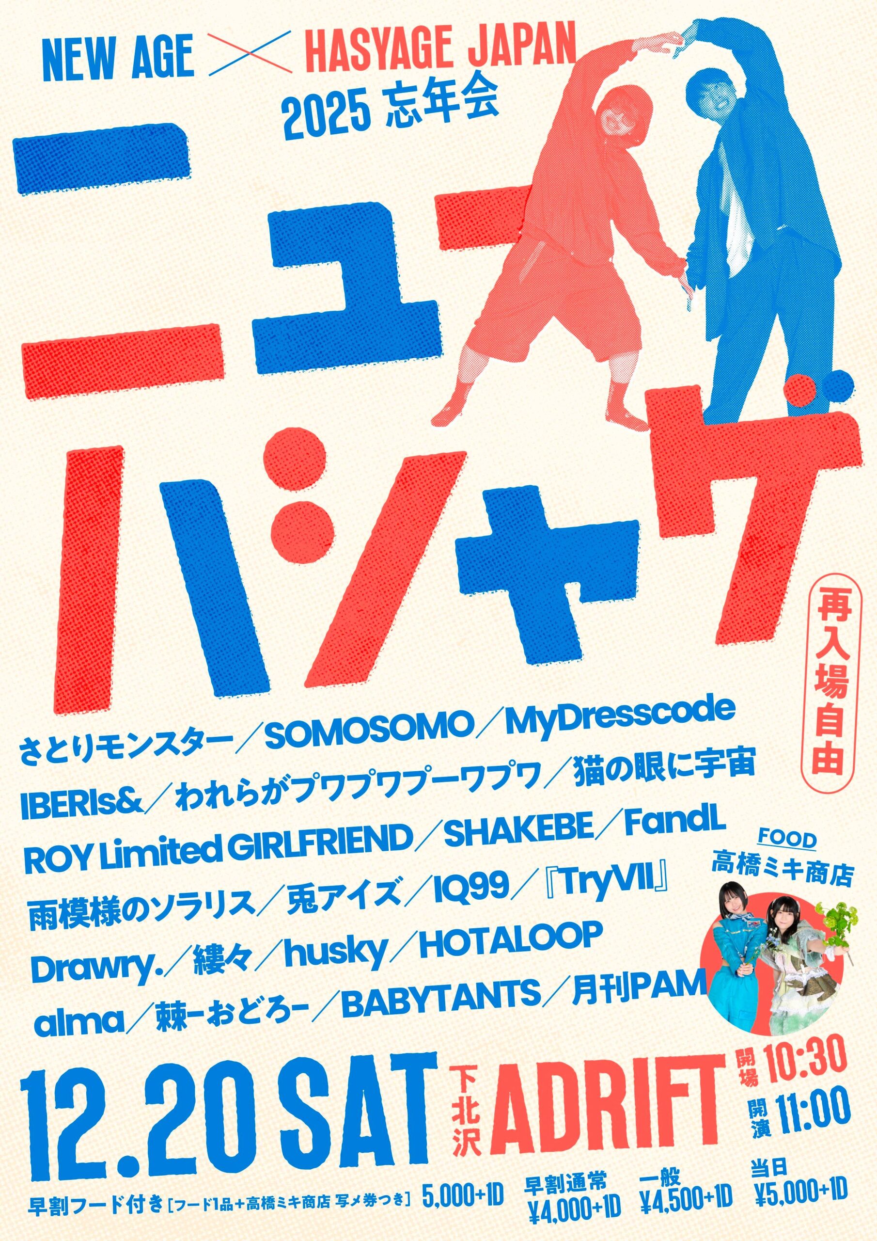 各+1D ※ 再入場自由 一般:¥4,500 / 当日:¥5,000