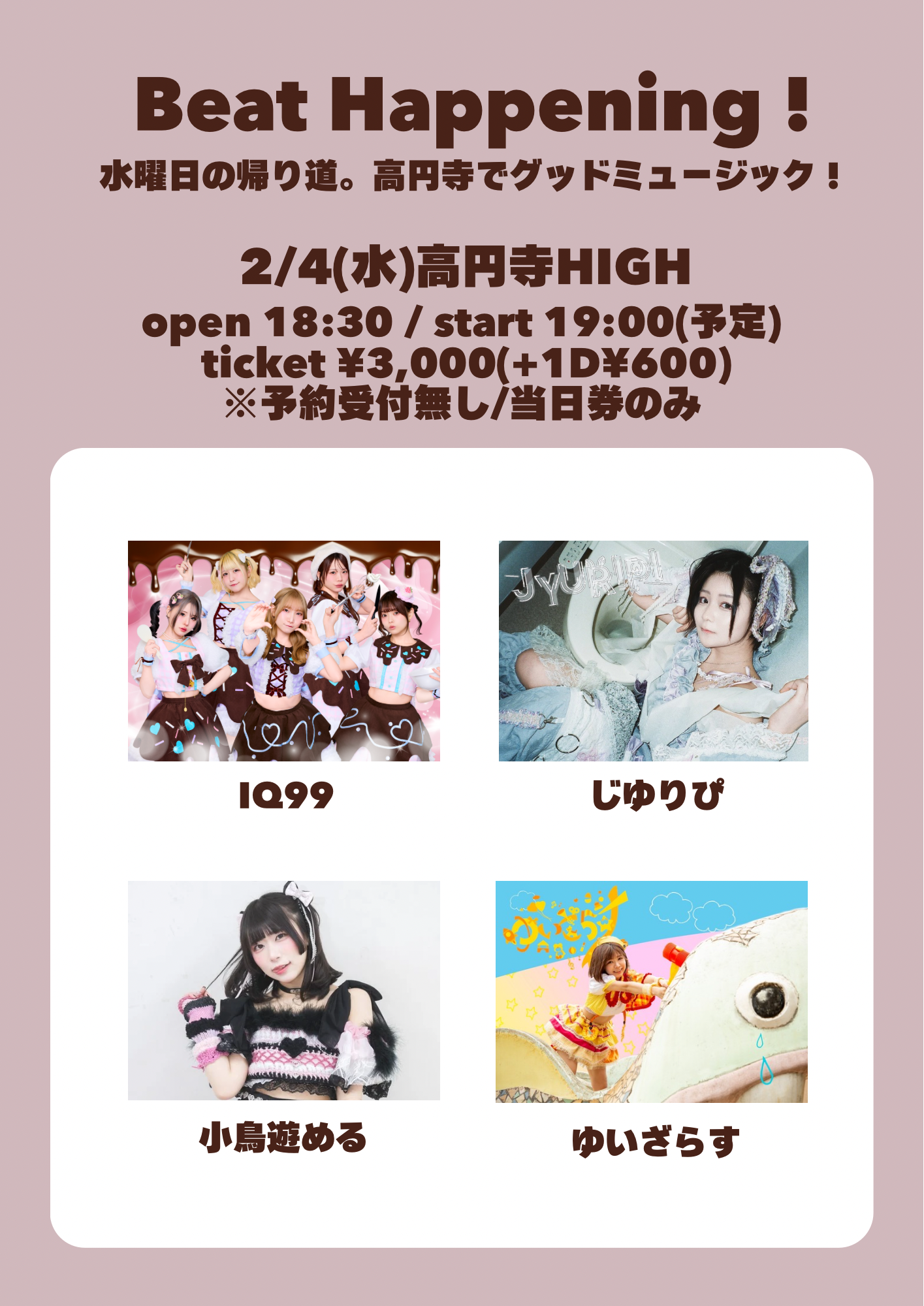 ticket ¥3,000(+1D) ※ 予約受付無し、当日券のみ