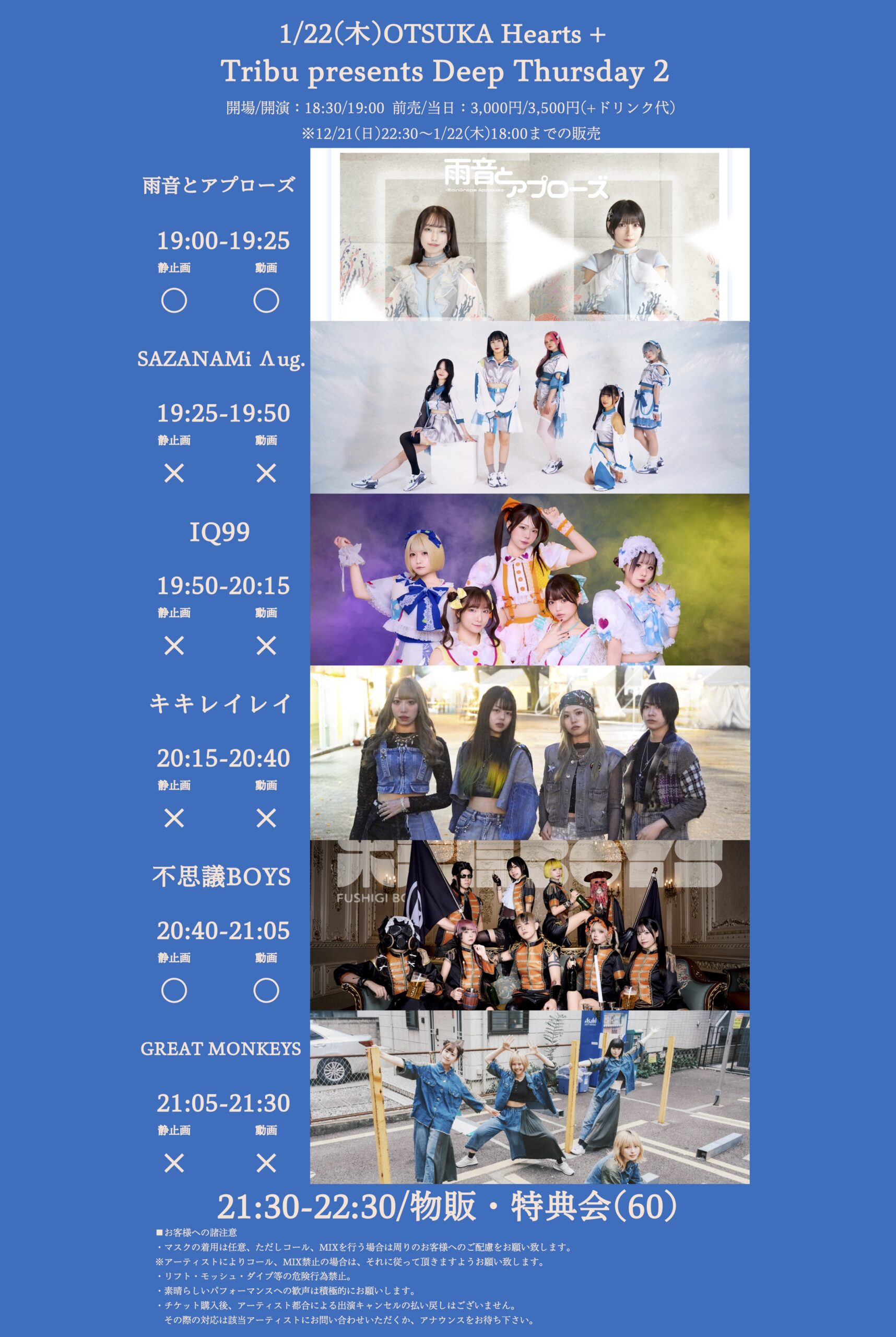 [出演] 雨音とアプローズ SAZANAMi Λug. IQ99 キキレイレイ 不思議BOYS GREAT MONKEYS